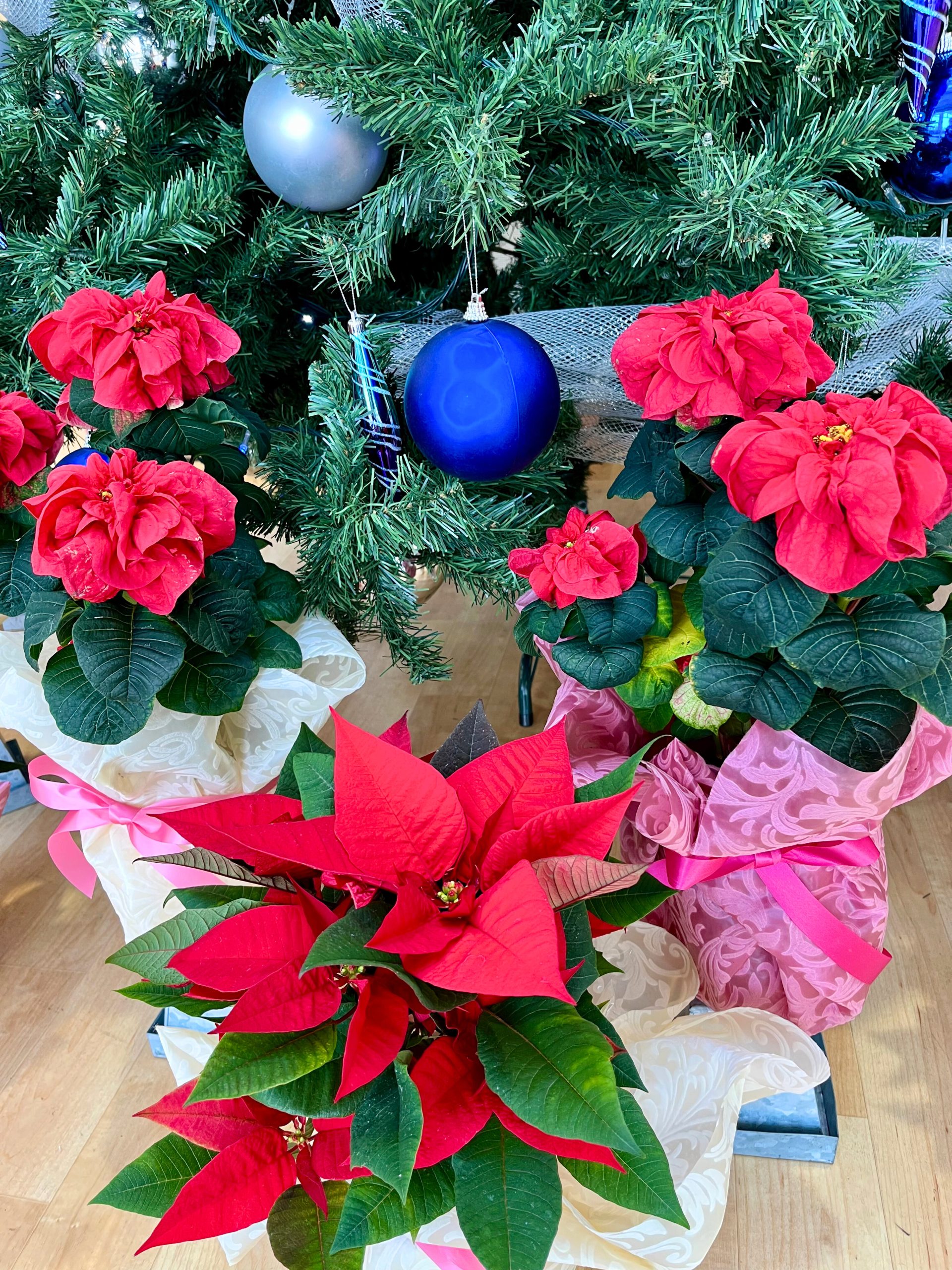 今年はバラの花のような形をしたポインセチアを追加しました。