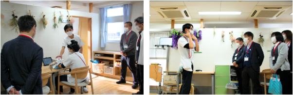 患者食堂・談話ホールでは、栄養科による当院オリジナルの付加食などの展示・試食を実施。リハビリ体育館や作業療法室、スタッフステーションでは、機能性やリハビリテーション機器(BMI、ロボットスーツHAL🄬、Orihime-Eyeなど)についてご紹介しました。