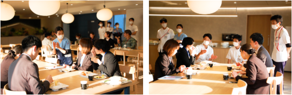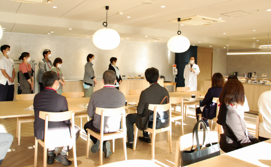 職員食堂では大串院長よりご挨拶ののち、当院製デザートを囲みながら懇親の時間を設けました。和やかな雰囲気の中で交流を深める機会となりました。