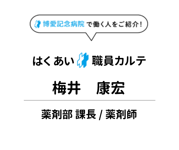 また、薬局の管理者として薬の管理を行っています。徳島県にある関連3病院の薬局をエリア担当しています。
