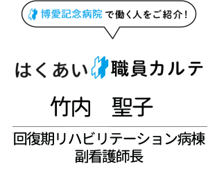 身体抑制廃止委員会(関連写真掲載)、排尿ケアチームに所属。排尿ケアチームでは、尿道カテーテルの抜去について医師と相談し、その後の経過観察も行っています。