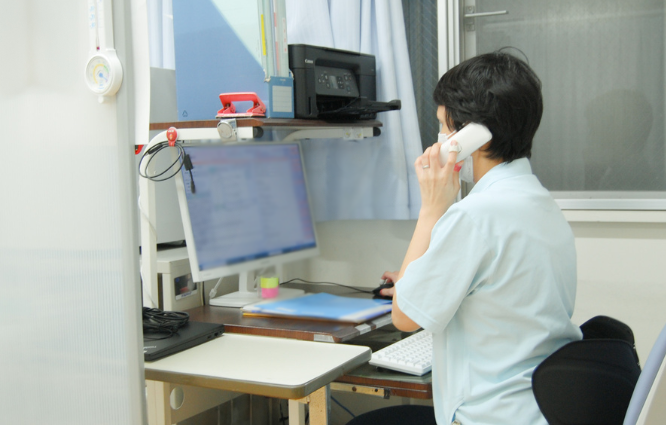 診察の準備が整ったことを医師へ連絡。患者さんの来院等に合わせて診療を円滑に進める調整役も担う