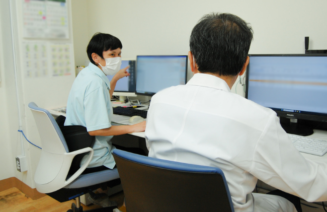 診察後、電子カルテの内容を医師と確認。正確な入力が、診療の質を支えている