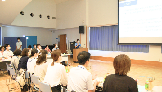 交流会の前半では、当院の概要や回復期リハビリテーション病棟の特徴などについてご紹介しました。