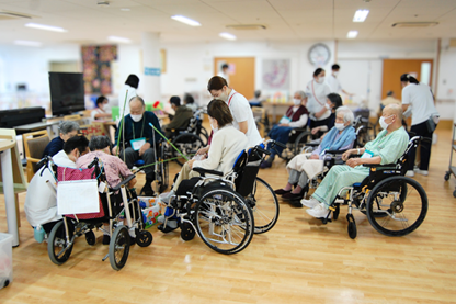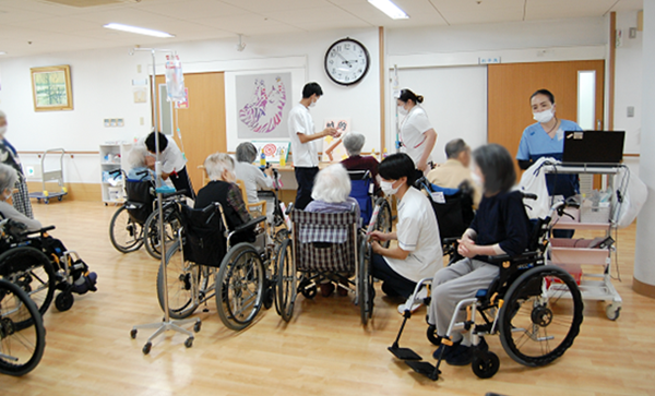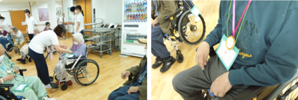 当日は、看護師・リハビリスタッフ・社会福祉士等が協力しながら進行やサポートを行いました。また、面会にいらっしゃったご家族が温かく見守る姿もありました。