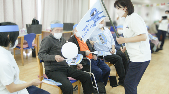 今回の運動会は、安全を最優先にしながら転倒リスクの軽減や身体機能に応じた動作設計を行い、職員が随時見守り・支援する形で実施しました。応援する声、手を取り合う姿、笑い声——どの瞬間も社会的交流・意欲の維持にもつながるリハビリ機会です。来年もぜひ、ご参加ください♪