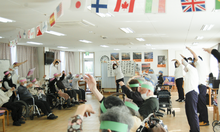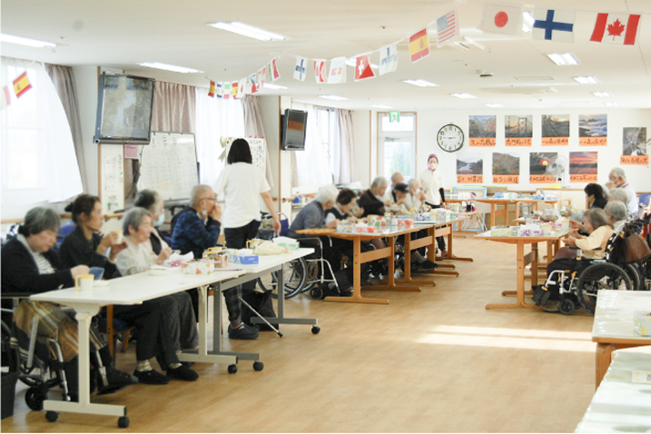 デイケアでは、利用者さん一人ひとりに合ったリハビリテーションを行い、日常生活のなかで“できること”を増やすサポートをしています。レクリエーション・リハビリテーション・入浴や食事などを通して、毎日の楽しみと生活の質の向上を目指しています。短時間でのご利用も可能です。