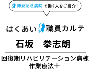 人と関わる仕事に就きたいと考えていた高校時代、部活動の顧問の先生にリハビリの道を紹介していただいたことが、作業療法を知るきっかけでした。