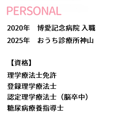おうち診療所神山でリハビリを担当しています。